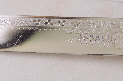![]() 模様の部分にシルバープレートの捲れ。 |