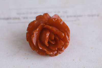 ★A&C15931 カーブドベークライト 薔薇のペンダントブローチ 31.3×30.5mm(7.1g) / ¥8,700.-〔税込み・送料別〕 送料:Aランク 【送料ページはこちら】 定形外郵便対応【ご注文時にお申し付けください】 ◆ご注文方法はこちら◆ キャラメル色の花弁に甘い艶を湛える、八重咲きの薔薇のペンダントブローチ。ベークライトを象牙細工さながらに彫刻して、ボリューム感も充分に表現された、シックな薔薇が胸元に大人の華やぎを添えてくれます。ベークライト特有のあたたかな素材感に、彫刻のタッチが手仕事のぬくもりを感じさせるひと品。特に目立つダメージの見られない、きれいなしっかりした状態です。20世紀前期のヨーロッパから。 金具は現行品です。ネックレスチェーンは付属せず、ペンダントブローチのみの販売です。写真の紙ケースは付属しません。 象牙やボーンを彫刻した、薔薇のアクセサリーをご紹介しています。ページ下部のリンクからご覧ください。 |