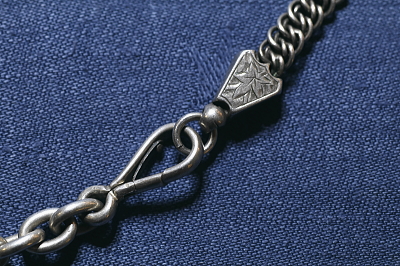 ★A&C15948 シルバーウォッチチェーンネックレス・チャーム L54cm(42.6g) / 800シルバー / シルバー 送料:宅配便送料無料〔3万円以上〕 ◆ご注文方法はこちら◆ イギリスの線彫りのモチーフで繋ぐアルバティーナチェーンと、フランスの緻密でボリュームのあるコマ組みのウォッチチェーンを組み合わせて、デコラティブなシルバーネックレスに仕立てました。チャームがペンダントのように揺れる、アシンメトリーなチェーンが首元をかざり、ネックレスとしても完成されたデザインと輝きを愉しめるひと品。何れのチェーンも19世紀のアンティークですから、デコラティブ且つクラシカルで上品に仕上がりました。ロケットやお気に入りのチャームを加えて、自分なりにアレンジするのも楽しそうです。19世紀のイギリス、フランス製。特に目立つダメージの見られない、きれいなしっかりした状態です。 同様にウォッチチェーンを組み合わせたネックレスをご紹介しています。ページ下部のリンクからご覧ください。 |