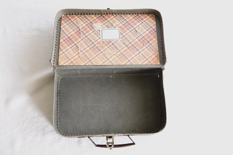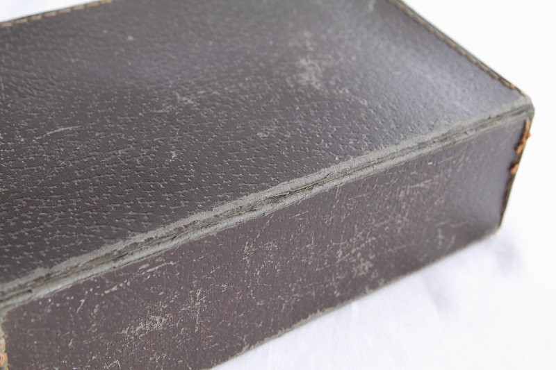★A&C15966 ペーパーミニトランク W27,D16.5,H8.5cm / ¥12,000.-〔税込み・送料別〕 送料:Aランク 【送料ページはこちら】 ◆ご注文方法はこちら◆ 経年の表情が、まるで世界中を旅してきたかのように思える、小さなペーパートランク。チョコレートのような濃褐色のボディは、レザーを模したエンボスの模様が浮かび、メタルのハンドルや留め金にも味わいのある、少々くたびれた味わいが魅力です。しかし強度的には今もしっかりしており、物入れなどに、まだまだ活躍してくれそう。子供の小さなサイズにも関わらず、古びた風合いに風格を感じるペーパートランクです。イギリスから。20世紀のイギリスから。 角の糸にほつれがあり、隙間ができていますが、強度的には全体にしっかりしています。 ドール用のトラベリングトランクやバスケットをご紹介しています。ページ下部のリンクからご覧ください。 |