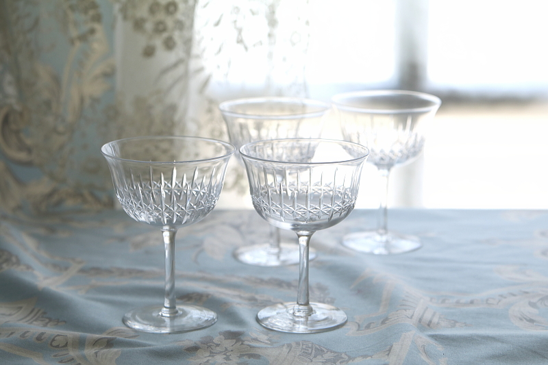 ★A&C15974 カットクリスタル シャンパングラス Thomas Webb A&C15974-A,B共: W7.9~8.2,H10.8~11cm / 各¥6,800.-〔税込み・送料別〕(ペア価格) 送料:Aランク 【送料ページはこちら】 ◆ご注文方法はこちら◆ ハンドカットで光が交差するような、緻密な模様を描き出したクリスタルのシャンパングラス。細やかなハンドカットの細工と、広がる輝きが美しいパターンは、英国で著名なクリスタルグラスメーカー、THOMAS WEBBのもの。容量は何れもすり切りで140ml程と、シャンパンやカクテル、冷酒など日々の暮らしで愉しめるグラスです。硬質のガラスにキリッとシャープなカットが映える、20世紀中期のヴィンテージクリスタルです。 何れもマークなどは入っていませんが、Thomas Webbによるものです。製造時の気泡や焼き込み、ガラス表面の小キズが見られる程度で、全体にきれいなしっかりした状態です。 同シリーズのタンブラーや、色々なスタイルのシャンパングラスをご紹介しています。ページ下部のリンクからご覧ください。 |