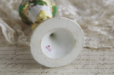★A&C16068 ハンドペイント ミニキャンドルスティック Victorian W5,H8.8cm / ¥11,800.-〔税込み・送料別〕 送料:Aランク 【送料ページはこちら】 ◆ご注文方法はこちら◆ ボーンチャイナの白い肌に、英国好みのグリーンとクリームで彩り、小花や金彩もあでやかな、ハンドペイントの小さなキャンドルスティック。これほど可愛らしいキャンドルスティックなら、ロウソクの灯りも一層あたたかく魅力的に灯りそうです。19世紀、ヴィクトリア時代のイギリスから。 キャンドルの収まる穴の直径が、最大2センチで深さは3センチ。足元の縁にごく小さな薄い欠けが見られますが、目立たず気にならないと思います。 同シリーズのインクウェルや、様々なキャンドルスティックをご紹介しています。ページ下部のリンクからご覧ください。 |