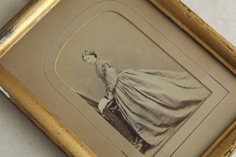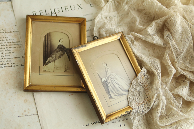 ★A&C16075 ヴィクトリアン ポートレートフレーム A&C16075-A,B共: W11.5,D1.5,H15cm(金具含まず) / 各¥11,000.-〔税込み・送料別〕 送料:Aランク 【送料ページはこちら】 ◆ご注文方法はこちら◆ 金色の古い塗装が魅力的な、こぶりなフレームに額装された、ドレスに身を包んだご婦人達のポートレート。対になる構図で写真に収まる、よく似た二人は家族なのでしょう、年齢の違いによるファッションの違いが興味深い、ヴィクトリア時代の額装フレーム。木製フレームに施された、金色の塗装は幾らか擦れたり剥がれたり、経年の表情を浮かべて、ガラスに守られつつも少しく色褪せた、時代を感じる写真によく似合います。19世紀、ヴィクトリア時代のイギリスから。 いずれも経年の色づきや色褪せ、塗装の剥離など見られますが、アンティークの風合いとして楽しめるものです。時代を考えればいずれもきれいなしっかりした状態です。 ガラス写真などのアンティークフォトをご紹介しています。ページ下部のリンクからご覧ください。 |