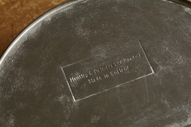 バスケットから顔をのぞかせる、愛らしい仔猫たちの、エメラルドの瞳に吸い込まれそうなブリキ缶。経年の落ち着いたトーンにや、飾りやすいカタチなど、猫好きならずとも視線を奪われるひと品です。イギリスのビスケットメーカー、Huntley