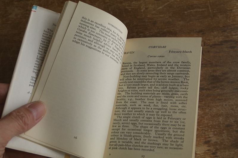 ![]() A&C16081-A(BIRDS' EGGS):9.2×14.5cm / ¥7,600.-〔税込み・送料別〕 1959年の出版。154の卵をカラーイラストで収録。 全216ページ。詳細には調べていませんが、落丁などは無さそうです。 |