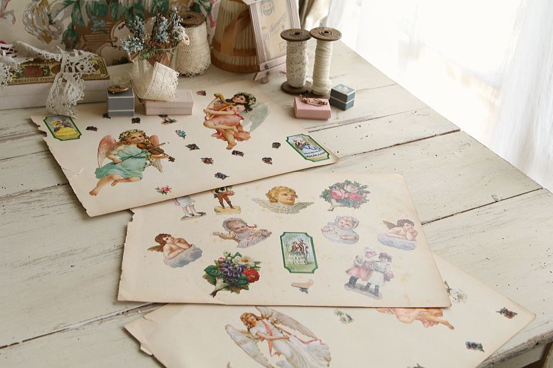 ★A&C16086 天使のデコパージュシート Victorian A&C16086-A,B共: 36×26.5cm / 各¥4,600.-〔税込み・送料別〕(B sold) A&C16086-C: 36×26.5cm / 送料:Aランク 【送料ページはこちら】 定形外郵便対応【ご注文時にお申し付けください】 ◆ご注文方法はこちら◆ 天使やお花、子供達の絵柄のデコパージュは、ヴィクトリア時代の空気が漂います。アルバムからの3枚のページに、同じ美意識で集められた愛らしいデコパージュを、丁寧に貼り付けたシートです。シートの端に小さな破れなどが若干見られるものの、100年以上の時間を過ごしても尚、古い時代の印刷の色味を現代に伝えます。1900年頃のヨーロッパから。 いずれもページ端に小さな破れなど見られますが、あまり気にならないと思います。 ヴィクトリアンのアルバムページや、アンティークポストカードをご紹介しています。ページ下部のリンクからご覧ください。 |