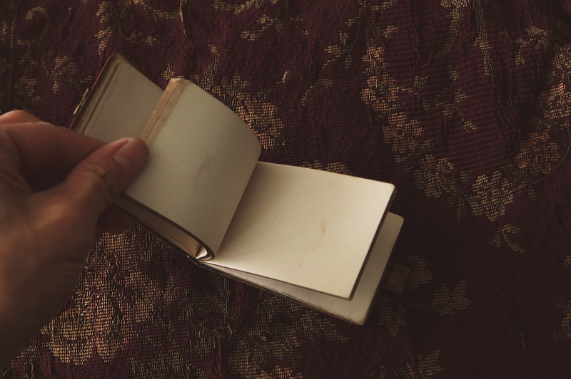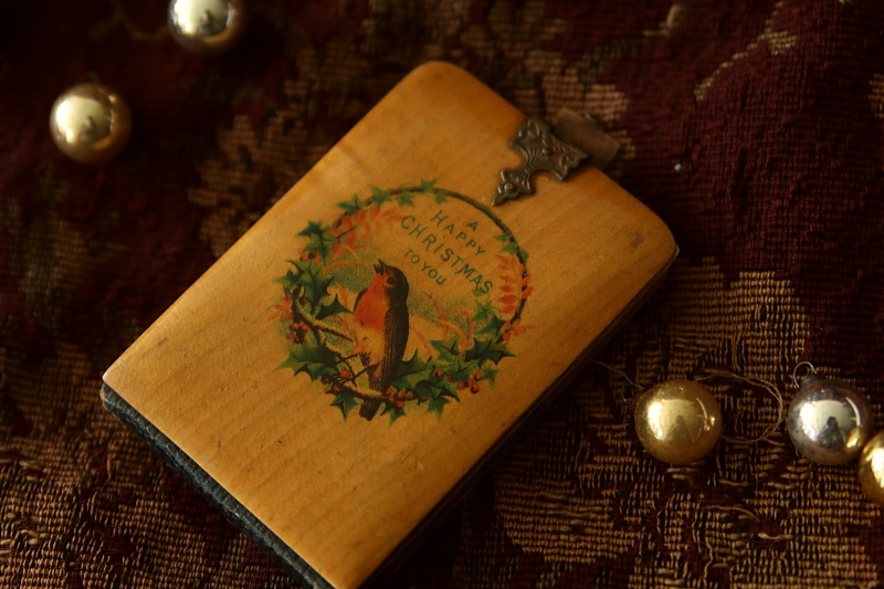 ★A&C16102 モシュリンヌのクリスマスメモ W6,D9,T1.3cm / ¥11,000.-〔税込み・送料別〕 送料:Aランク 【送料ページはこちら】 定形外郵便対応【ご注文時にお申し付けください】 ◆ご注文方法はこちら◆ 「A HAPPY CHRISTMAS TO YOU」の言葉と、柊のリースに留まるツバメの絵柄を、古い木製の表紙に転写した、モシュリンヌのメモ帳。木目の浮かぶ表紙に、過ごした時間を偲ばせる経年の味わいも好ましいい、儚くも愛らしい掌の一冊です。裏表紙には「THE COMPLIMENTS OF THE SEASON」と新年を祝う言葉が添えられる、クリスマスシーズンに似合いのメモは、ページの三方金、背表紙のレザー、留め金など、細部もしっかりとした作りが嬉しい。1900年頃のイギリスから。 48ページ。2ページ程ちぎった跡が見られます。全体にしっかりしたきれいな状態です。 フランス製のノートをご紹介しています。ページ下部のリンクからご覧ください。 |