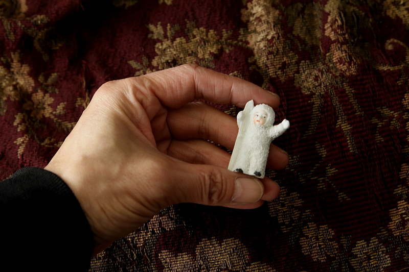 ★A&C16105 SNOW BABY T4.2cm / 送料:Aランク 【送料ページはこちら】 定形外郵便対応【ご注文時にお申し付けください】 ◆ご注文方法はこちら◆ 19世紀末のドイツから広まり、様々なメーカーで作られた、クリスマスを盛り上げる小さなビスクのフィギュリン「スノーベイビー」。雪を身にまとう子どもの姿が特徴的で、小さな妖精の様な姿に、スキーを抱え手を挙げる、いきいきとした表情が可愛らしいひと品です。1900年頃のドイツから。 全体にきれいなしっかりした状態です。 かわいらしいフィギュリンなどご紹介しています。ページ下部のリンクからご覧ください。 |