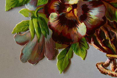 ![]() A&C4952-B(パンジーバスケット):24×16.5 / sold パープルのグラデーションがきれいなパンジー。 エンボス加工で立体的に表現されています。 裏面ののりが固化してぽろぽろ取れてきます。 台紙はありません。 |