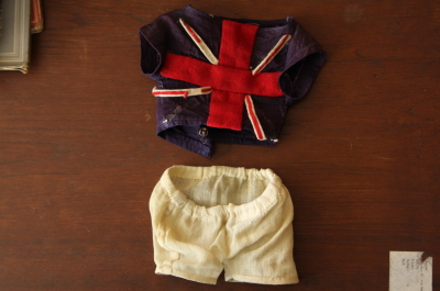 ★A&C10570 ユニオンジャックシャツのベア“Bob” T31cm / 送料:宅配便送料無料(3万円以上) ◆ご注文方法はこちら◆ モッズスタイルのユニオンジャックシャツがよく似合う、可愛らしいベアをご紹介。 時代に色褪せた、渋い風合いのモヘアに、傷で曇ったオレンジの、もの言いたげなグラスアイズ。特別なキャラクターを感じさせるチャーミングな彼は、今はもう引退してしまったけれど、ロンドンでベア屋さんをしていた友人が、長く人生の友として可愛がっていたベアを譲ってくれたものでした。その名を“Bob”と言います。 1940年代頃のイギリスのベアだと思われます。長いキャリアを持った彼女が言うには、たぶん?チャドバレーだろうということでしたが、メーカーにこだわらず、その道のプロが、好んでそばに置いていたベアは、長い間愛情たっぷりに育てられたと分かる表情で、素直な眼差しが何よりの魅力です。 この度、ロンドンからはるばる連れ帰ってきましたので、ぜひこの先可愛がってくださる方に。 経年の傷みなどありますが、しっかりした状態で、目立つダメージはありません。服は、ユニオンジャックが剥がれ気味ですので、出来る範囲で着けておきます。 うさぎやベアのぬいぐるみをご紹介しています。ページの下の方からご覧下さい。 |