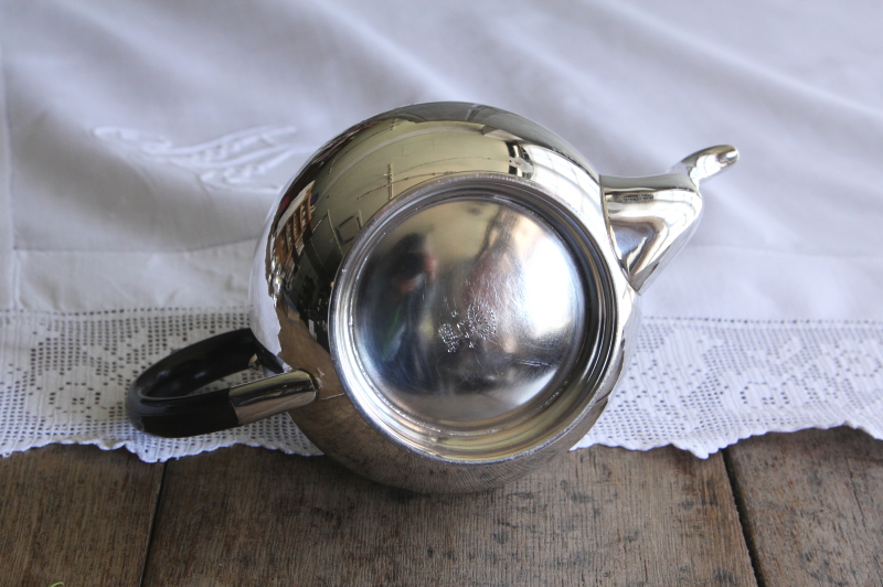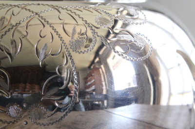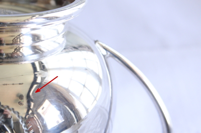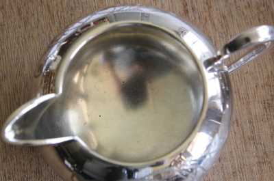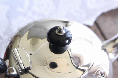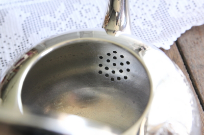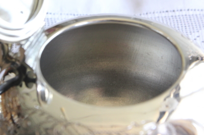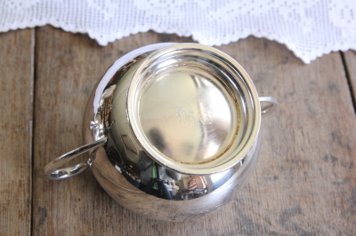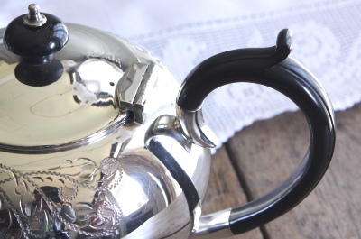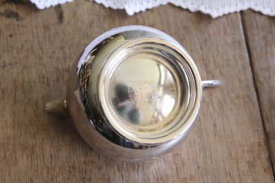 ★A&C14085 植物模様のエングレービング ティー3点セット ティーポット:W26,D14,H14cm クリーマー:W13.D9.3,H7.8cm シュガーポット:W15,D10.5,H8.5cm / 送料:宅配便送料無料【3万円以上】 ◆ご注文方法はこちら◆ 円みのるシルエットに、ハンドエングレーヴィングで植物模様を描いて、輝きも目に心地よい、シルバープレートのティーセットは、クラシカルなスタイルに、しっかりとした重みと造りに英国製らしい質の高さが窺える良品。黒い樹脂ハンドルや摘みもつややかで、全体にきれいな状態を保つ1950~60年代頃のイギリス、シェフィールド製。容量900cc程と程よいサイズに、茶葉もよく動きそうなフォルムで、内部もメッキの剥がれなどないきれいな状態なので、紅茶好きの日常使いにおすすめです。 ポットの内部はクリーニング済みできれいです。水切れ良いです。何れもシルバープレート表面の小キズが若干見られます。クリーマーとシュガーポットにごく浅い凹みが1箇所ずつ見られますが、殆ど気づかない程度で、ヴィンテージ品としては、非常に良い状態と言えます。 色々なデザインのティーポット、コーヒーポットを御紹介しています。ページの下の方からご覧ください。 |