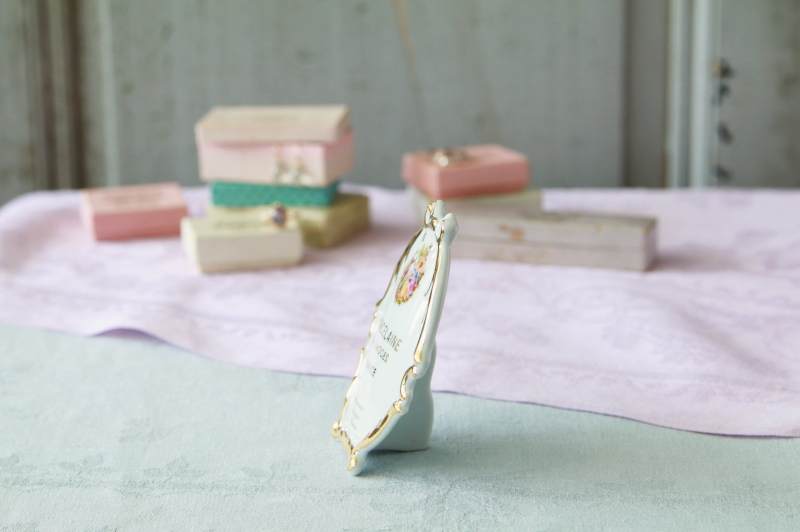 ★A&C15637 ポーセリンのディスプレイサイン Meissner Limoges W7.3,D3.3,H10cm / 送料:Aランク 【送料ページはこちら】 ◆ご注文方法はこちら◆ フランスの磁器どころ、リモージュのディスプレイ用サインは、リモージュらしく白い磁肌と金彩のコントラストが鮮やかで、窯の得意とした高貴なカップルの逢瀬がプリントされた、コレクターにおすすめの店頭用の非売品。天辺にリボンが飾られる、かわいらしいデザインも気に入りです。20世紀後期のフランス製。 特に目立つダメージの見られない、きれいなしっかりした状態です。 他にも陶器メーカーのディスプレイサインをご紹介しています。ページ下部のリンクからご覧ください。 |