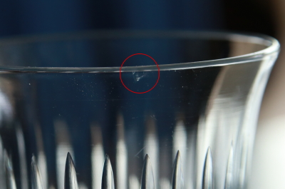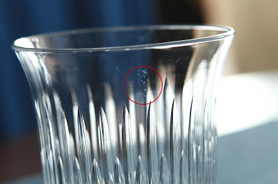 ![]() 光に透かして見える程度のガラス表面の傷。使用上ほとんど気にならないと思います。 |