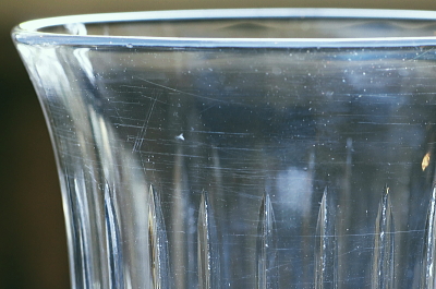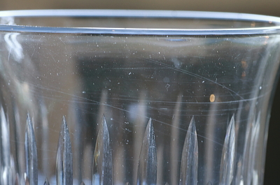 ![]() 光に透かして見える程度のガラス表面の細かな傷。使用上ほとんど気にならないと思います。 |