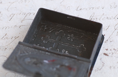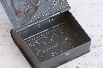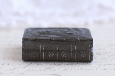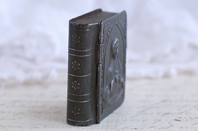 ★A&C15652 聖心の聖母 聖書型のロザリオケース W3.3,D1.2,H3.8cm / 送料:Aランク 【送料ページはこちら】 定形外郵便対応【ご注文時にお申し付けください】 ◆ご注文方法はこちら◆ 長い時代を過ごしてきた、ブリキの風合いが好ましい、聖書型のロザリオケース。聖心の聖母のレリーフが魅力的で、端正なお顔立ちのマリア様に、祈る心も癒やされるよう。祈りの道具を仕舞うのにぴったりで、いつも目につくところに置いておきたいひと品です。20世紀前期のフランスから。 ロザリオは付属しません。蓋はしっかり閉まります。 他にもロザリオケースをご紹介しています。ページ下部のリンクからご覧ください。 |