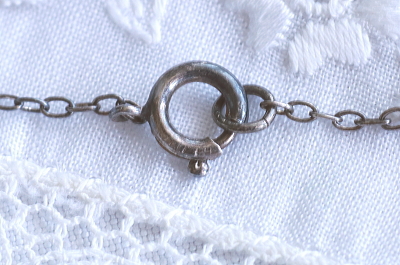 ★A&C15665 ピンクガラス シルバーネックレス L40cm(4.8g) / ¥14,500.-〔税込み・送料別〕 ガラス / 925シルバー 送料:Aランク 【送料ページはこちら】 定形外郵便対応【ご注文時にお申し付けください】 ◆ご注文方法はこちら◆ 濃密なピンクのガラスが愛らしいネックレス。ピンクばかりでなく、クリアガラスを添えることで、甘すぎない大人に似合う可愛らしさになっています。経年で色づいたシルバーのチェーンやフレームが、ガラスの透き通る輝きを際立たせる、アンティークならではの奥行きのある表情です。20世紀前期のヨーロッパから。 大きなピンクガラスの表面に、小キズが幾らか見られますが、あまり目立ちません。それ以外は全体にきれいなしっかりした状態です。写真のアンティークケースは付属しません。 ガラスのシルバーネックレスなど、シルバージュエリーをご紹介しています。ページ下部のリンクからご覧ください。 |