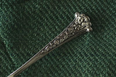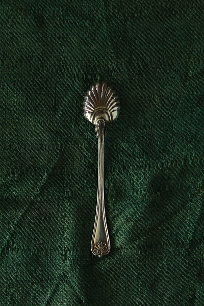 ![]() A&C15668-B:L5.7cm(3.3g) / sold ボウルの裏に925シルバーのホールマーク。ハンドルに薔薇のレリーフが浮かび上がる、1895年のイギリス、チェスター製。ボウルに細かな点状の黒ずみが見られます。 |