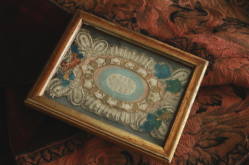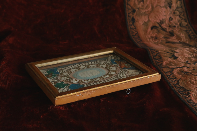 ★A&C15671 ヴィクトリアングリーティングカードのフレーム 16×20.5cm / 送料:Aランク 【送料ページはこちら】 ◆ご注文方法はこちら◆ 天使が祝福するように天辺で見守る、華麗なデザインのグリーティングカード。レースや葉っぱを模した紙を、デコパージュのように組み合わせて、中央に掲げられた、大切な人への想いを込めた詩を飾ります。19世紀のカードを、後年イギリスでフレーミングされたもので、褪せたゴールドのヴィンテージモールディングフレームがカードに似合って良い雰囲気です。裏板の始末などのゆるい感じも、イギリスのアンティーク好きらしさが出ていて微笑ましい。 カードのレースに小さな破れ、フレームに僅かな欠けなど見られますが、全体にしっかりした状態です。 レリジャスな印刷物のフレームをご紹介しています。ページ下部のリンクからご覧ください。 |