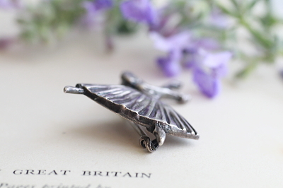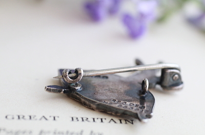 ★A&C15679 バレリーナシルバーブローチ 24×28.5mm(4.6g) / sold 925シルバー 送料:Aランク 【送料ページはこちら】 定形外郵便対応【ご注文時にお申し付けください】 ◆ご注文方法はこちら◆ スターリングシルバーのバレリーナブローチは人気があって、トリュフでも過去に何度かご紹介してきました。色々なサイズやバリエーションがありますが、優雅に舞うシルエットがシルバーの輝きで引き立ち、ブローチとして着けやすいサイズも好ましい品です。しっかり厚みを持たせたキャストシルバー製で、ホールマークから1948年のイギリス、バーミンガム製と分かります。特に目立つダメージの、きれいなしっかりした状態です。 様々なデザインのシルバージュエリーをご紹介しています。ページ下部のリンクからご覧ください。 |
