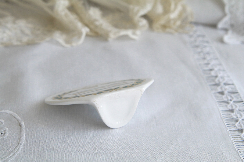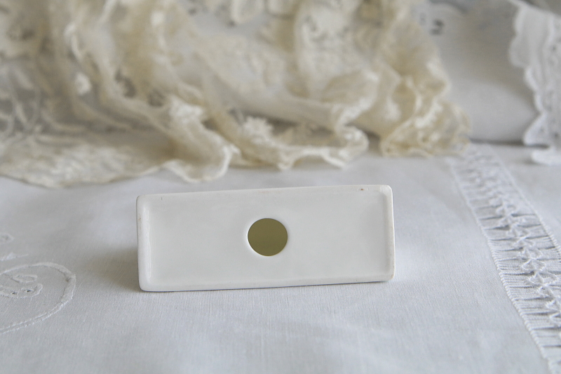 ★A&C15681 MINTONのショップディスプレイサイン A&C15681-A:W10.5,D3.5,H7.2cm / ¥11,000.-〔税込み・送料別〕 A&C15681-B:W10.7,D4,H5.5cm / ¥9,500.-〔税込み・送料別〕 A&C15681-C:W8.3,D3.3,H5.4cm / ¥7,300.-〔税込み・送料別〕 送料:Aランク 【送料ページはこちら】 ◆ご注文方法はこちら◆ ボーンチャイナの鮮やかな白に、イギリスの名窯「MINTON」のロゴが浮かぶ、ショップディスプレイサイン。当然ながらミントンで焼かれた、スタイリッシュなロゴデザインのサインは、非売品の店頭用ディスプレイです。ミントンのカップソーサーなどと共に飾れば、コレクションを引き立てる気の利いたひと品として愉しめる、コレクターにおすすめの密かなレアアイテム。金彩とグリーンのコントラストが鮮やかなA、白地にライトグリーン一色のB、Cの三種類をご紹介。イギリスの20世紀後半の品と思われるヴィンテージです。 何れもかすかに釉薬表面に小キズが見られますが、全体にれいな状態です。Bの底の角に薄い小さな欠け、Cの背面に製造時の窯キズが見られますが、何れも目立たずあまり気にならないと思います。 ウエッジウッドなど、イギリスのポッタリーのディスプレイサインをご紹介しています。ページ下部のリンクからご覧ください。 |