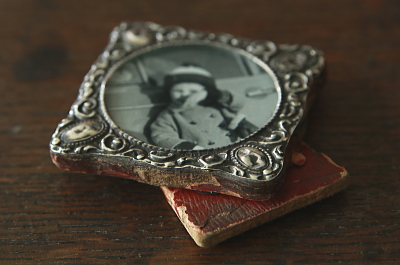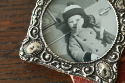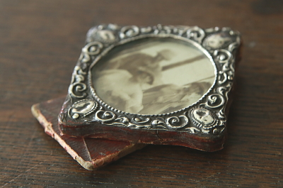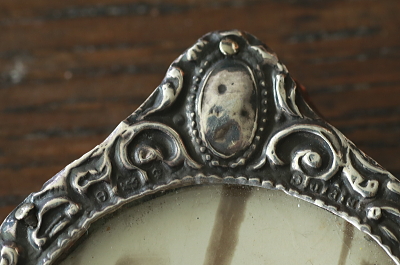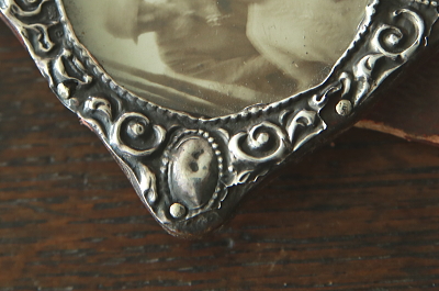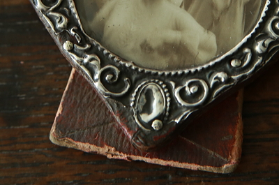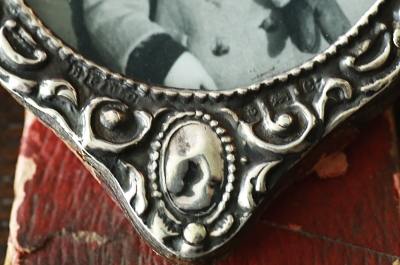 ★A&C15706 銀飾りの小さなフォトスタンド A&C15706-A,B共: W5.7×H5.7cm / 各¥12,500.-〔税込み・送料別〕(B sold) 送料:Aランク 【送料ページはこちら】 定形外郵便対応【ご注文時にお申し付けください】 ◆ご注文方法はこちら◆ ポケットに入れて出かけられるくらい小さなフォトスタンド。唐草状の模様に紛れるようにホールマークが刻まれた、スターリングシルバーの輝きで飾られます。四隅などに凹みがいくらか見られますが、モノクロームやセピアの古い写真がよく似合う、アンティークならではの経年の好ましい表情です。ベースは厚紙で出来ており、古びた味わいを見せつつしっかりとした状態で残っています。ガラスのカバーやこれも厚紙の脚など、繊細なパーツも残っていて、役に立つのが嬉しいです。ホールマークから、1904年のイギリス、バーミンガム製と分かる、120年前のアンティーク。 Aは角にシルバーの小さな破れ、Bは脚と裏蓋を繋いだ部分に破れがあり外れます。何れも目立たずあまり気にならないと思います。 様々なデザイン、素材のフォトフレームをご紹介しています。ページ下部のリンクからご覧ください。 |