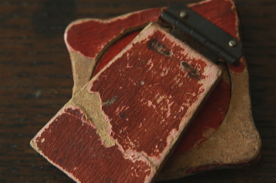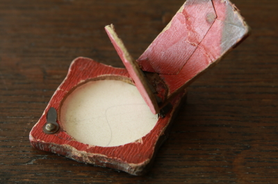 ![]() A&C15706-B:W5.7×H5.7cm / sold 裏蓋と脚を繋いだ部分が破れており外れますが、押し込んで脚をしっかり立たせます。 |