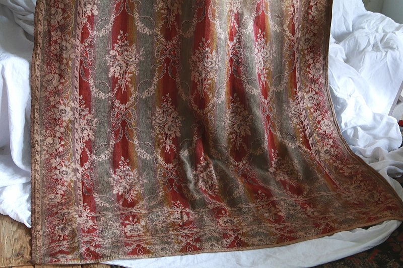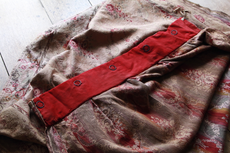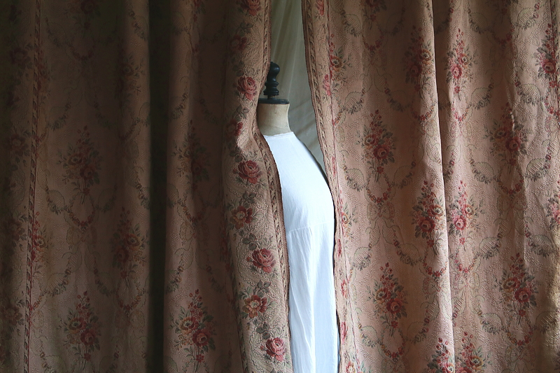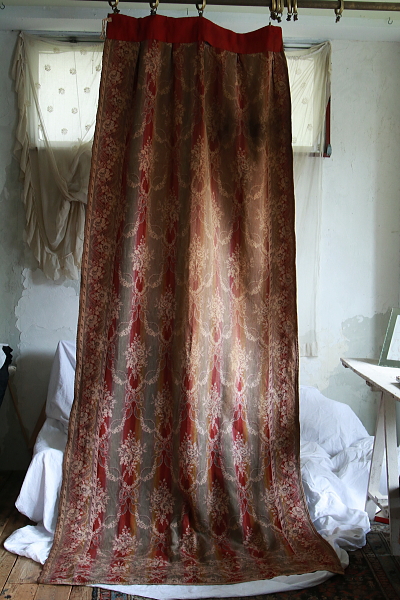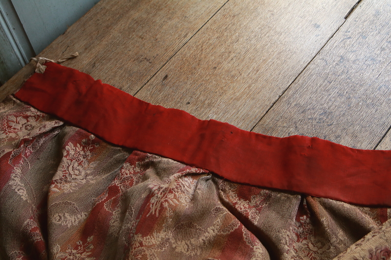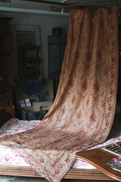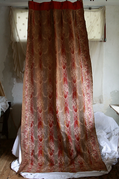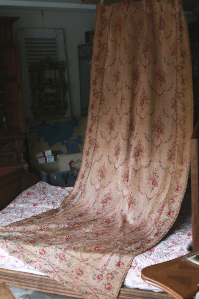 ![]() A&C15710-B:89~122×282cm / sold 下部に小穴が2ヶ所と繕い跡が見られますが、小さくドレープに紛れて目立ちません。黄ばみや色褪せ、染みが見られますが、ドレープに紛れてあまり目立ちません。 |