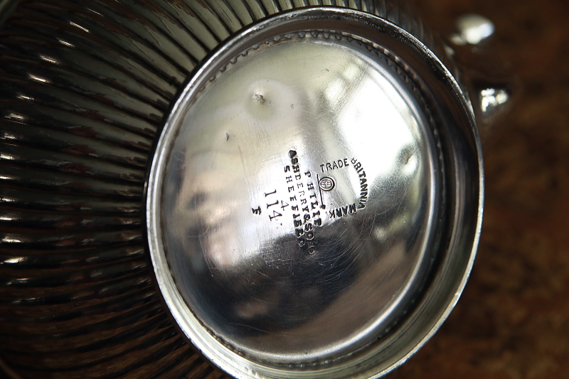 ![]() 底に浅小さな凹みが数か所見られます。 BRITANIA TRADE MARK PHILIP ASHBERRY & SONS SHFFIELD |