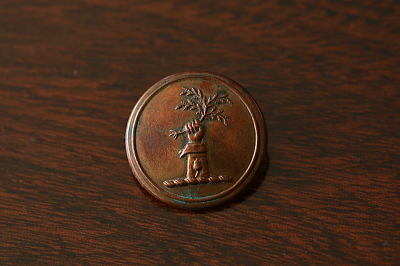 ★A&C15736 ヴィクトリアン リバリーボタン 「苗木を握る手」 A&C157369-A~F共:(A,E sold) 直径26.3mm / 各¥2,600.-〔税込み・送料別〕 送料:Aランク 【送料ページはこちら】 定形外郵便対応【ご注文時にお申し付けください】 ◆ご注文方法はこちら◆ 苗木を握る手のモチーフが、真鍮の光沢の中に浮かび上がります。貴族が使用人のお仕着せにつけた、リバリーボタンと呼ばれるもので、これは家を象徴するモチーフなのでしょう。花ではなく根の生えた苗木を握るところが面白い、ヴィクトリアンのリバリーボタンは、真鍮の色づきに差が見られるのも、味わいとして愉しめます。1900年頃のイギリス製。特に目立つダメージの見られない、きれいなしっかりした状態です。 様々なデザイン、素材のボタンをご紹介しています。下部のリンクからご覧ください。 |