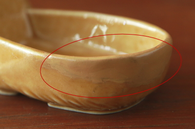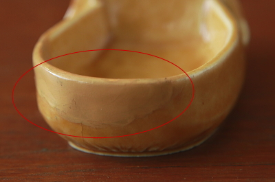 ![]() 丸部分に補修跡。 |