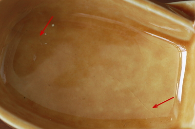![]() ヒビを裏から見たところ。 |
