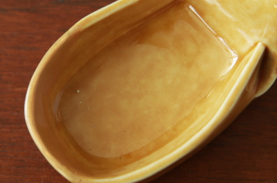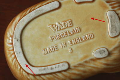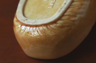 ★A&C15747 ヘッジホッグの小物入れ "WADE" W10.5,D6.4,H5.8cm / 送料:Aランク 【送料ページはこちら】 ◆ご注文方法はこちら◆ 英国では身近な動物、ヘッジホッグの背中が蓋になった、可愛らしい陶器の小物入れ。リングやピアスの入れ物に程よいサイズで、背中の針で大切なジュエリーを守ってくれそうなヘッジホッグは、イギリスのヴィンテージ好きにはおなじみのメーカー、WADE製です。ボディに補修跡、底にヒビが入っています。ダメージはあるものの、補修跡はきれいな直しで目立ちたず、可愛らしさに免じてゆるせそうです。20世紀後半のイギリス製。 写真のアクセサリーは付属しません。 WADEなどのショップディスプレイサインをご紹介しています。下部のリンクからご覧ください。 |