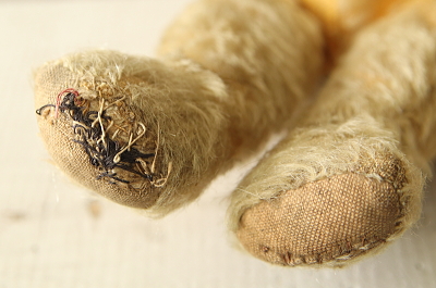![]() 右の爪先に繕い跡。 |