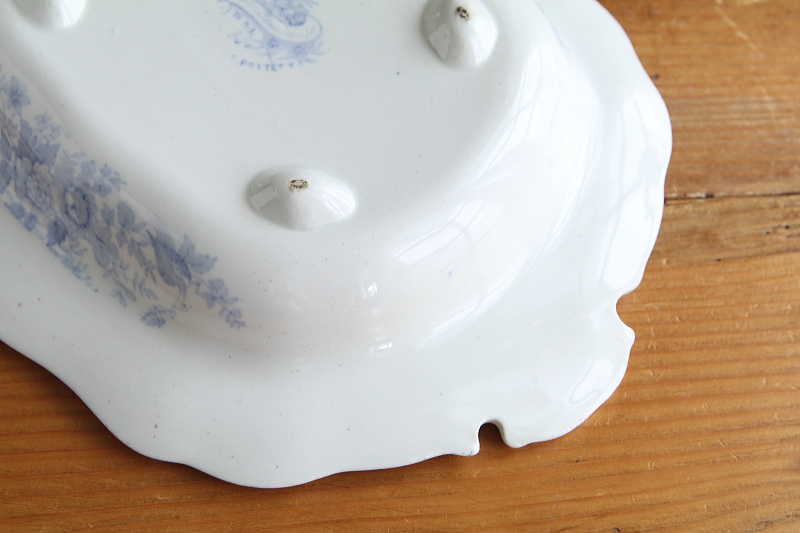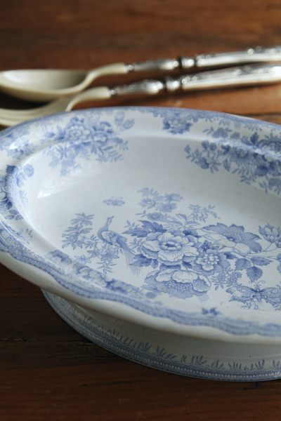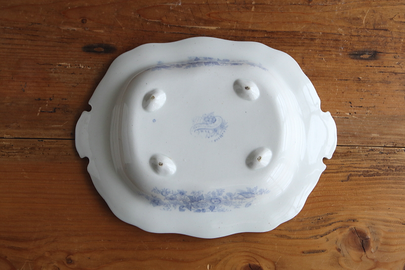 ★A&C15764 アジアティックフェザンツ ベジタブルディッシュ W28.5,D22.2,H5cm / ¥15,700.-〔税込み・送料別〕 送料:Aランク 【送料ページはこちら】 ◆ご注文方法はこちら◆ 薔薇に誘われたキジを描いた、ブルー&ホワイトのベジタブルチュリーン。ぽってりと厚みのある陶肌に、つややかな釉薬が際立つ、 ゆったりとしたサイズの深みあるプレートは、様々な料理に使い勝手が良さそうです。ヴィクトリア期の古みのある転写プリントの、瑞々しくブルーが際立つ、アンティークならではの味わいが魅力的。長年扱い続けてきたアジアティックフェザンツですが、近年では状態の良いものは希少で、釉薬に小キズがいくらか見られる程度の状態の良さがうれしいひと品。蓋付きの物が多い野菜用の器ですが、こちらの品は蓋はありません。19世紀のイギリス製。 ブルー&ホワイトの様々なアイテムをご紹介しています。下部のリンクからご覧ください。 |