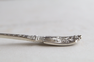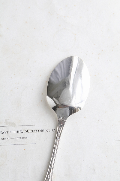 ★A&C15773 植物文様のジャムスプーン L15.7cm(34.6g) / 送料:Aランク 【送料ページはこちら】 定形外郵便対応【ご注文時にお申し付けください】 ◆ご注文方法はこちら◆ ボウルには写実的に描いた素朴な草花紋がエッチングで入れられ、デコラティブな装飾のハンドルと共に、輝きも鮮やかなシルバープレートのジャムスプーン。甘さと華やかさが程よく溶け合った、ヴィクトリアンのひと品は使い勝手の良いサイズで、ジャム以外にもサービングなど役に立ちそう。シルバープレート表面に細かなキズは見られますが、摩滅など目立つダメージの見られない、全体にきれいなしっかりした状態です。19世紀のイギリスから。 ティーナイフやアイスクリームスプーンをご紹介しています。下部のリンクからご覧ください。 |