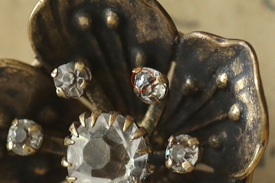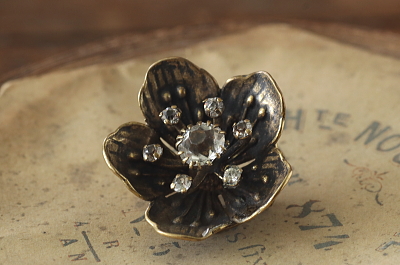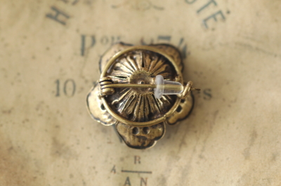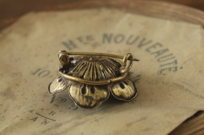 ★A&C15775 ペーストの花のブローチ 23.1×23.8mm(2.9g) / sold ガラス / 真鍮 送料:Aランク 【送料ページはこちら】 定形外郵便対応【ご注文時にお申し付けください】 ◆ご注文方法はこちら◆ 時代を帯びた真鍮の小花。梅か桜か可憐な花姿に、経年で深く色づいた真鍮の花弁に、ペーストの花蕊が鮮やかに引き立ちます。サイズも小さめの桜ぐらいなので、木から落ちた花を身に着けるような、かわいらしいブローチです。1900年頃のヨーロッパ製。 ペーストにわずかに欠けが見られますが、肉眼ではわからないぐらいで、気にならないと思います。 ペーストブローチなど、様々なコスチュームジュエリーをご紹介しています。下部のリンクからご覧ください。 |