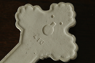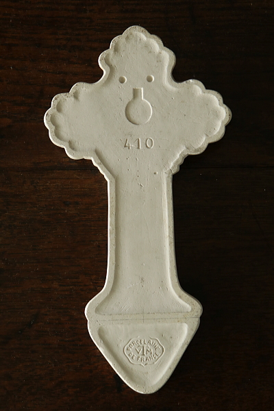 ★A&C15778 聖水盤の石膏型 "Victor, Mauger et Tessier" W10.5,D2.5,H20.8cm / ¥17,800.-〔税込み・送料別〕 送料:Aランク 【送料ページはこちら】 ◆ご注文方法はこちら◆ 中心に心臓をデザインした聖心の十字架は、磁器の聖水盤を作る際に必要となる石膏の型。もちろん聖水盤には使えないけれど、乾いた石膏の素材感が、磁器の輝きとは異なる魅力に溢れます。経年の埃っぽさが殊更好ましいひと品は、19世紀末から20世紀初頭のフランス製。繊細な石膏製ながら特に目立つダメージの見られない、きれいなしっかりした状態がうれしいです。 インテリアとして飾りたい大きな十字架をご紹介しています。下部のリンクからご覧ください。 |