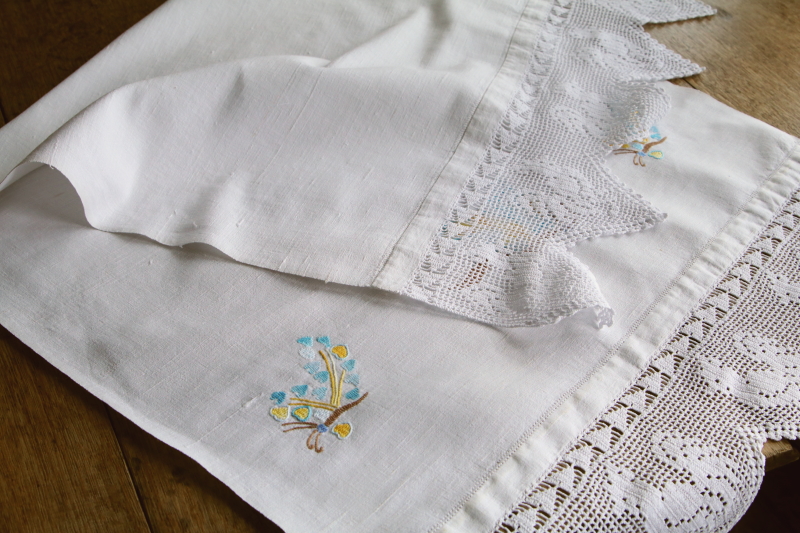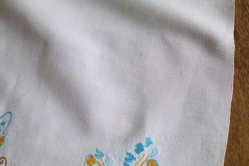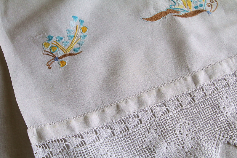 ★A&C15821 雄鶏のフィレ飾りゲストタオル 蝶の刺繍 W68×H140cm / 送料:Aランク 【送料ページはこちら】 定形外郵便対応【ご注文時にお申し付けください】 ◆ご注文方法はこちら◆ フィレレースの飾りに雄鶏が並ぶ、ちょっと珍しくかわいらしいモチーフのゲストタオル。ゲストタオルとしては大きなサイズの、わずかに経年の色づきも感じる織りの質感のしっかりとした厚めのリネンに、ブルーやイエローで蝶の刺繍が施されて、ますます可愛らしく仕上がっています。イギリスで購入。 リネン生地の端や、フィレの縫い代にうっすら黄ばみが残りますが、特に目立つダメージの見られない、しっかりとした状態です。 (状態については、出来る限り注意深く確認しておりますが、見つけきれなかった小さな染み、薄い染み、僅かな糸切れ等、目立たない小さなダメージがあることもございます。何卒ご容赦ください。) |
