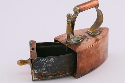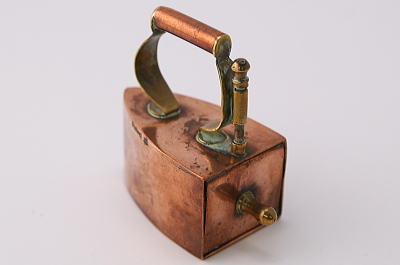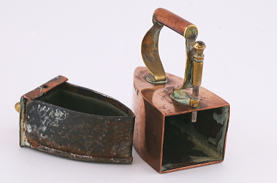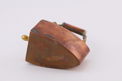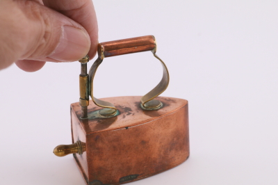 ★A&C15842 コッパーのアイロン型シンブルケース W5.8,D3,H5.6cm / 送料:Aランク 【送料ページはこちら】 ◆ご注文方法はこちら◆ コッパーの赤銅色とブラスの金色の、輝きの組み合わせにも重みを感じます。掌に乗るサイズの小さなアイロンは、内部にシンブルを収める凝った作りのシンブルケース。19世紀の裁縫の小物には、コレクションしたくなるような手の込んだ作りや美しいデザイン、贅沢な素材のものが見られますが、引き出しを開ける仕組みなどもよくできており、自慢の逸品になりそうなひと品です。1900年頃のイギリスから。 フランス製の800シルバーのシンブル付き。シンブルに穴がありますが、アイロンは目立つダメージの見られない、きれいなしっかりした状態です。 様々な意匠を凝らした手芸道具をご紹介しています。ページ下部のリンクからご覧ください。 |