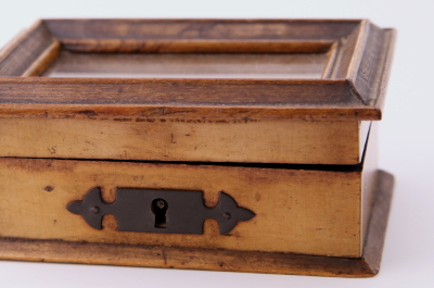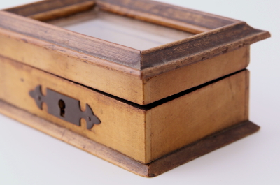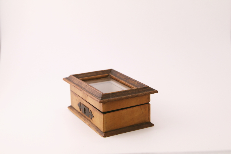 ★A&C15843 木箱のジュエリーボックス W10.8,D7.5,H4.7cm / 送料:Aランク 【送料ページはこちら】 ◆ご注文方法はこちら◆ 過ごしてきた日々に色づき、あたたかな古色を纏う小さな木箱。蓋のガラスを通して、収められたジュエリーや小物を、額装したように愉しめるジュエリーボックス。良い鉄味のキープレートなど古びた味わいの木箱に、ピンクサテンのクッションや、グリーンの包みボタンが愛らしいコントラストです。19世紀のフランスから。 鍵が付きますが回せません。飾りとして愉しんでください。ブローチや人形は付属しません。木の反りにより蓋の端が少々浮きます。それ以外はしっかりした状態で、内部のクッションもきれいです。 様々な素材、デザインのジュエリーボックスをご紹介しています。ページ下部のリンクからご覧ください。 |
