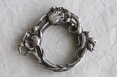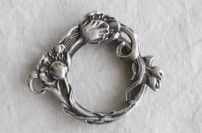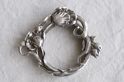 ★A&C15854 アールヌーヴォーの花のナプキンリング A&C15854-A~D共: W6,D5,H0.8cm / 送料:Aランク 【送料ページはこちら】 定形外郵便対応【ご注文時にお申し付けください】 ◆ご注文方法はこちら◆ 艶やな花姿をリースにした、アールヌーヴォーの花のナプキンリング。渋みと華やぎをシルバープレートの輝きに滲ませる、時代の空気感が漂うような、花の表現を愉しんでほしい。小ぶりなサイズはナプキンリング以外にも、愉しめるシーンがありそうです。1900年頃のヨーロッパから、いずれも特に目立つダメージの見られない、きれいなしっかりした状態です。 他にも様々なデザインのナプキンリングをご紹介しています。ページ下部のリンクからご覧ください。 |