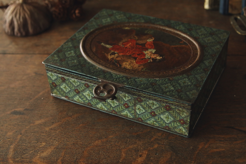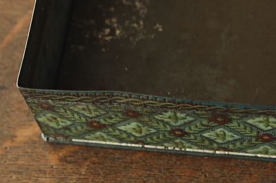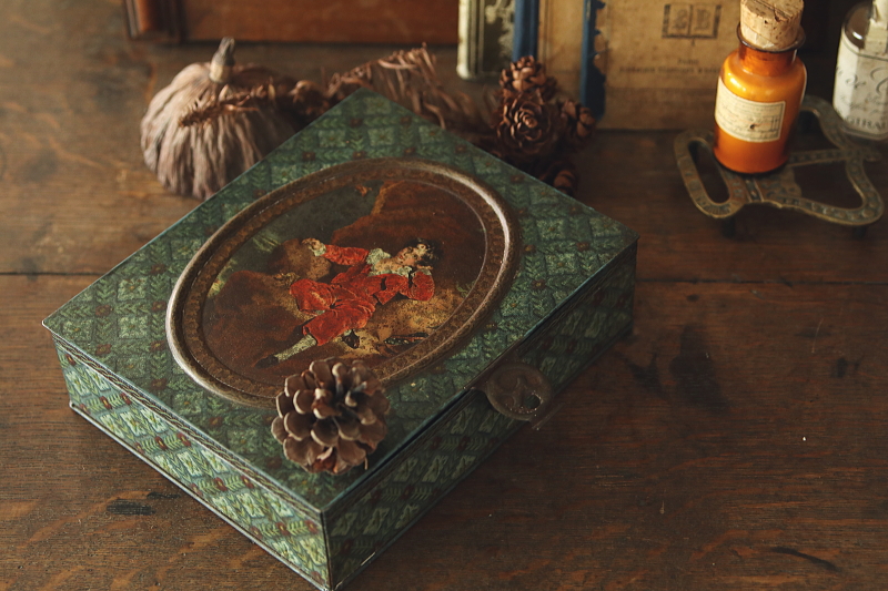 ★A&C15862 「THE RED BOY」のビスケット缶 HUNTRY & PALMERS W21.8,D17.8,H5.7cm / ¥13,600.-〔税込み・送料別〕 送料:Aランク 【送料ページはこちら】 ◆ご注文方法はこちら◆ 漂う古色が魅力的な、味わい深いブリキ缶。身にまとう赤い衣装から、「THE RED BOY」とも呼ばれる肖像画は、ダラム伯爵の子息を描いた、「ランプトン少年像(MASTER LAMBTON)」。18~19世紀の著名な肖像画家、トーマス・ローレンスの代表作を中央にプリントし、アンティークティンならではの古びた風合いも名画によく似合う、鑑賞に耐えるビスケット缶をご紹介。赤い衣装と、ブルーグリーンを基調にした地模様の、コントラストが深く印象に残る、20世紀初頭のイギリスの品。底面のメーカーロゴに、ビスケットがパリで賞を取った旨記されており、豪華な缶を用意するのも納得です。 表面にキズがいくらか見られ、側面に小さな歪みがありますが、目立つ凹みは見られません。留め金を留めるにコツがいり、簡単に固定できません。留め具が開いた状態になっても蓋は浮かずに閉まります。 全体にしっかりした状態で、時代を考えればきれいと言えます。 個性豊かなデザインのお菓子缶をご紹介しています。 ページ下部のリンクからご覧ください。 |