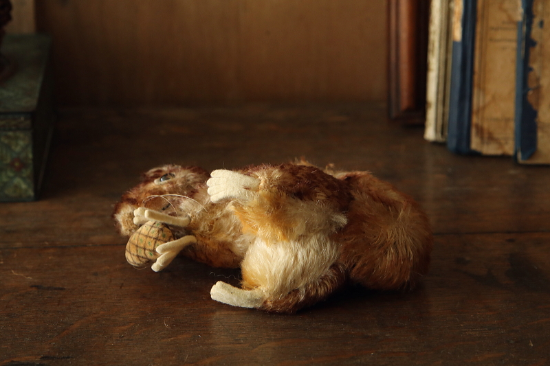 ★A&C15864 リスのPerri "Steiff'" T15cm / ¥21,000.-〔税込み・送料別〕 送料:Aランク 【送料ページはこちら】 ◆ご注文方法はこちら◆ ふわふわのシッポにつぶらな瞳が可愛らしく、モヘアの毛並みをつい撫でたくなる木の実を抱えたリス。ウォルト・ディズニーのドキュメンタリー映画の主人公ペリを、ドイツのシュタイフが手掛けたぬいぐるみは、さすがは老舗の出来栄えです。いくつかサイズがありますが、両手で包むように抱いて、リスらしさを感じられるのも可愛らしいサイズ。耳のボタンが残っているのも嬉しい、1950~60年代のドイツ製。 特に目立つダメージの見られない、全体にきれいなしっかりした状態です。 他にもくまのぬいぐるみをご紹介しています。ページ下部のリンクからご覧ください。 |