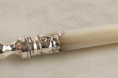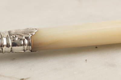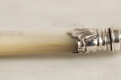 ![]() A&C15871-B:L17.2cm(35.7g) / ¥15,000.-〔税込み・送料別〕(ハンドルにヒビ) ハンドルの付け根にヒビが見られますが、強度的な問題はなくあまり気にならないと思います。シルバー表面に小キズがいくらか見られます。 |