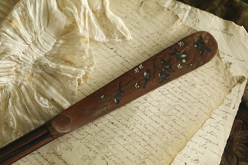 ★A&C15890 花鳥柄のオリーブウッドページターナー W4.2,L34.3cm / ¥13,600.-〔税込み・送料別〕 送料:Aランク 【送料ページはこちら】 ◆ご注文方法はこちら◆ 花開いた枝に、蜜を吸いに来た小鳥たち。オリーブウッドの木目の上に描かれた、ハンドペイントの筆致が魅力的。古びた木の質感も相まって、朗らかでいてどこか寂しさが漂う、過ぎ去った季節を感じさせるひと品。ハンドルにブレード状のヘラが付いた道具は、大きな本のページを捲る為のページターナー。木の表面にキズやスレ、色ムラの見られる乾いた表情が好ましい、ヴィクトリアンアンティーク。19世紀のイギリスから。 エッジや先端にごく小さな欠けが見られるものの、強度的にはしっかりした状態で、時代を考えれば絵柄などきれいに残っています。 絵柄の魅力的な紙箱や、特別な素材のペーパーナイフをご紹介しています。ページ下部のリンクからご覧ください。 |