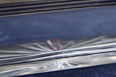 ![]() 丸の位置に薄い欠けを均した跡。角に引っかかり程度のごく小さな欠けが見られます。 |