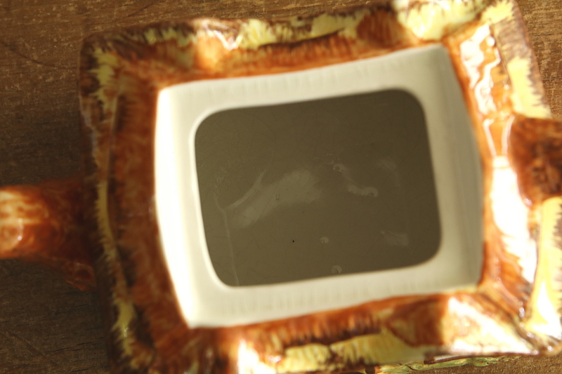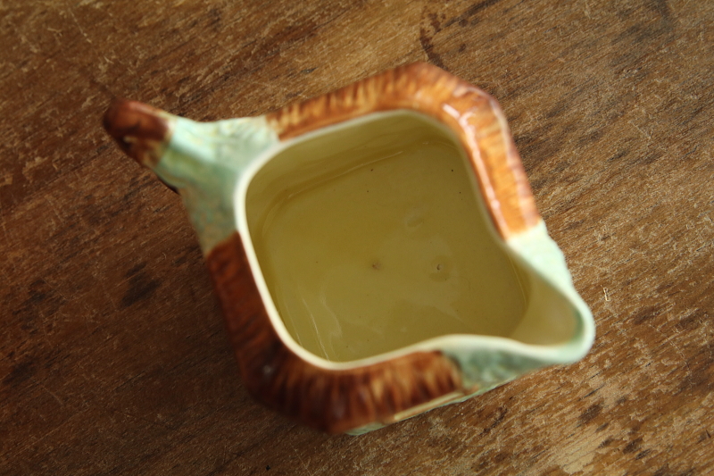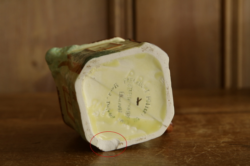 ![]() A&C15902-A: ティーポット:W21,D11,H13cm クリームジャグ:W11.8,D8.5,H7.4cm / sold PARAMOUNT POTTERY製。ポットの容量は700ml程。 スパウトの水切れは注ぎ口に一滴残る程度で、陶器のティーポットとしては標準的です。 クリームジャグの底の角に薄い欠けがあります。 |