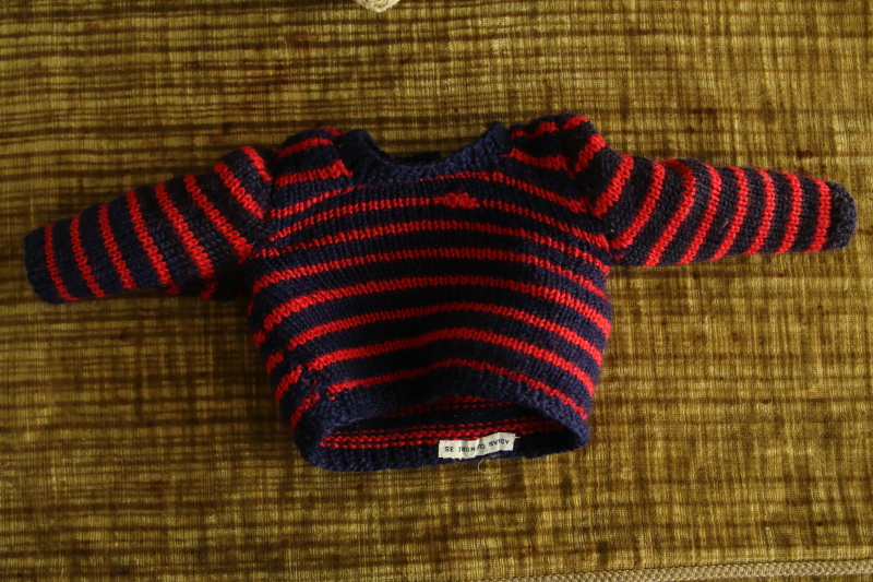 ★A&C15903 CHADVALLEY テディベア T42cm / ¥34,000.-〔税込み〕 送料:宅配便送料無料【3万円以上) ◆ご注文方法はこちら◆ 丸顔にオレンジの瞳が愛らしい、チャドバレーのベア。紺×赤のボーダーニットに、デニムの履きこなしなど、ロンドンパンクを思わせる衣装がよく似合っています。つぶらなプラスティックアイ、鼻や口のステッチの真面目そうな表情、ふわふわのゴールドモヘアにちょっと擦り切れたベルベットパウなど、可愛がられて来たぬいぐるみならではの経年の表情です。お腹に仕込まれたスクウィーカーも「キューキュー」鳴り、服に守られて体のモヘアもよく残っています。お顔や足先にモヘアの抜けたあと、つま先の爪のステッチに切れなど見られますが、長年愛されてきたベアの、幸せな表情として愛着も湧きそうです。1950年代頃のイギリス、チャドバレー製のベア君は、脇のタグが残っているのもやはり嬉しい。 首と両手両足のジョイントはしっかり回ります。首のジョイントがちょっと緩めです。モヘアの抜けや脚の爪ステッチの切れなどありますが、体のモヘアもよく残っており、全体にきれいなしっかりした状態と言えます。首の後ろとセーター、パンツに名札らしきタグが縫い付けられています。 ベアなどぬいぐるみをご紹介しています。ページ下部のリンクからご覧ください。 |