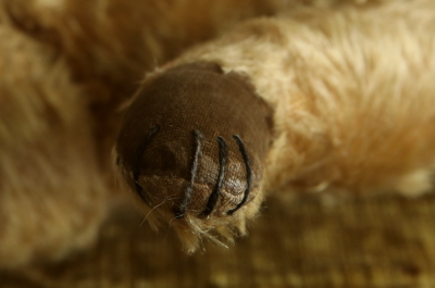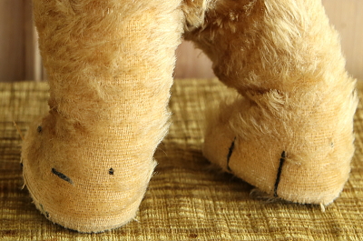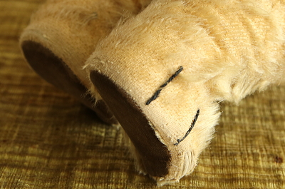 ![]() 足先にモヘアの擦り切れ、ステッチ切れが見られます。 |