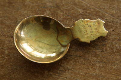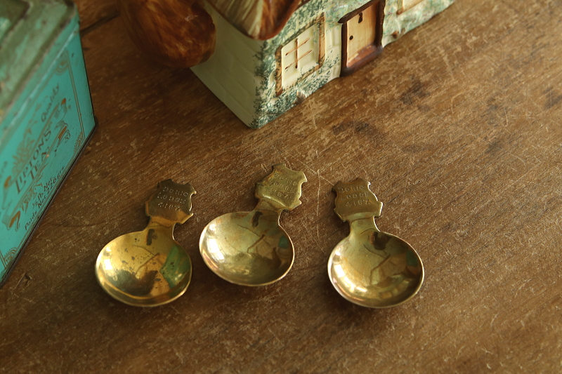 ★A&C15905 スーベニール ブラスティーキャディースプーン A&C15905-A~C共: W4,L6.6cm / 各¥4,800.-〔税込み・送料別〕 送料:Aランク 【送料ページはこちら】 定形外郵便対応【ご注文時にお申し付けください】 ◆ご注文方法はこちら◆ 真鍮の経年の表情で、同じティーキャディースプーンにも個性が現れます。紋章をかたどったハンドルに、タガネでコツコツ刻まれた飾らないレタリングの「DORIC LODGE 4167」。英国Warwicshireのフリーメイソンの支部のスーベニールのようですが、真鍮板から抜き出したシンプルな造形が気持ちよく、真鍮の厚みや滑らかさにも道具に触れる喜びを感じます。使い勝手が良さそうで、経年の腐食点や、ボウルの縁の歪みも手作りゆえのこととして楽しめそう。20世紀中期のイギリスから。 何れも腐食点や、ハンドルの付け根にボウルの歪みが見られます。歪みは製造時のもので、特に気にならないと思います。 ティーキャディースプーンやティーストレーナーをご紹介しています。ページ下部のリンクからご覧ください。 |